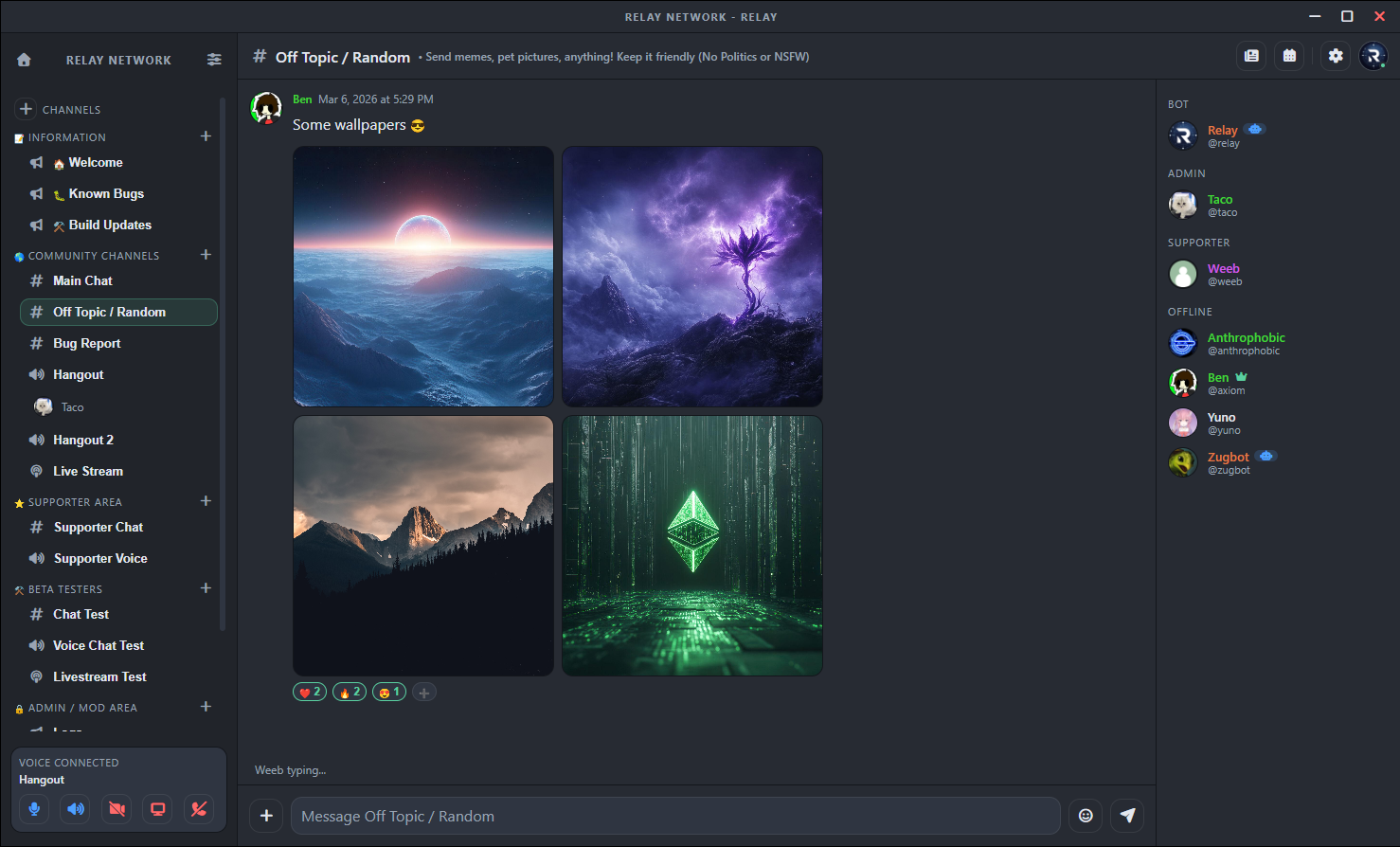 The Relay Network is currently under active development and evolving every day. Interested in testing our beta client? Join our Relay Server!